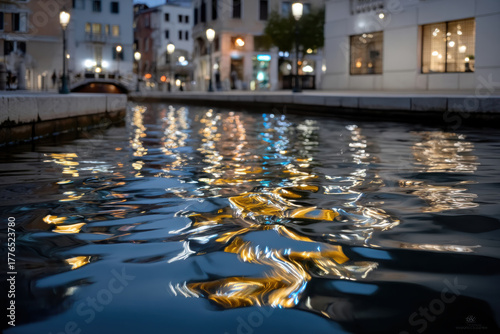 Abstract reflections of vibrant lights dancing on the water capture the essence of urban life, creating a mesmerizing view that evokes feelings of wonder and tranquility.