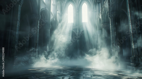 abstract renaissance empty big hall dark gothic light and smoke room