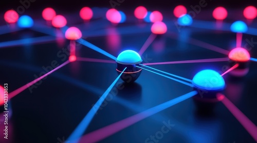 Abstract representation of a connected network with glowing spheres and lines, symbolizing data transfer and connectivity.