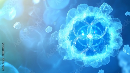 Abstract representation of a glowing cell structure, showcasing intricate details and luminous effects in a soft blue color palette.