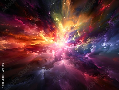 Abstract representation of a supernova implosion, a breathtaking explosion of colors across the canvas, simulating the birth of a star in deep space.