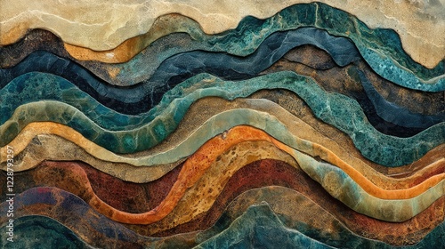 Abstract representation of colorful layered waves showcasing the beauty of nature, emphasizing textures, patterns, and earthy tones for artistic inspiration and design projects.