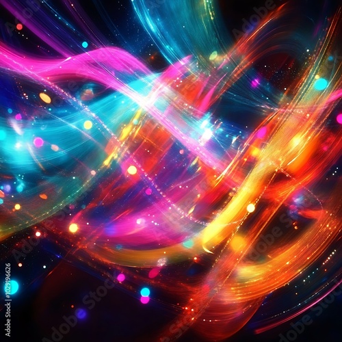 abstract representation of communication signals with bright colors and lights, generative ai