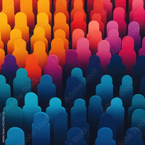 Abstract representation of diversity with colorful silhouettes symbolizing unity in a vibrant community.