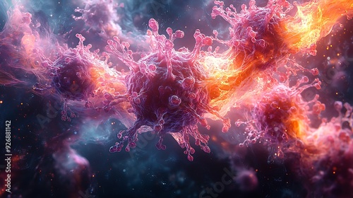 Abstract representation of the monkeypox virus spreading, featuring organic, fluid shapes in dark and ominous tones