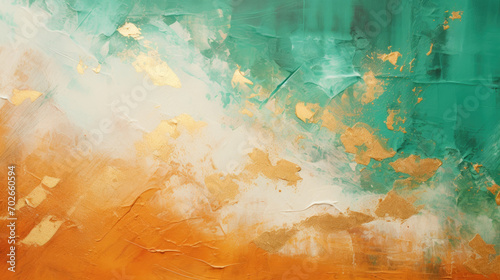 Abstract rough green white gold art painting texture