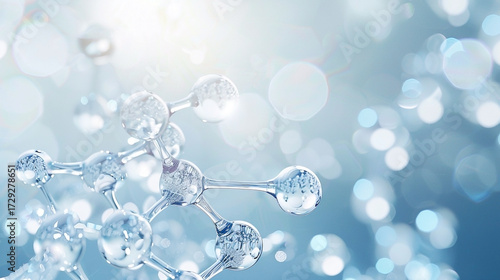 Abstract science background showing structure of transparent molecule with bokeh effect