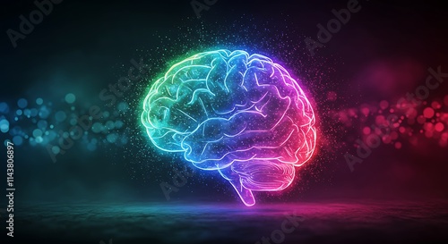 Abstract Science Illustration of a glowing Neural Brain Artwork concept. creativity, innovation, and artificial intelligence futuristic energy, electric, neon, technology visualization, illustration
