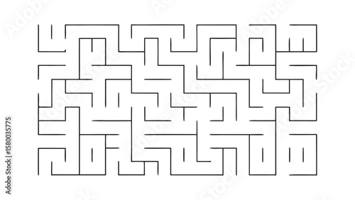 Abstract seamless maze pattern with black linear paths on white background in minimal geometric style