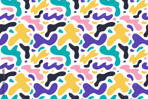 Abstract Seamless Pattern with Colorful Doodle Stains. Vector Carnival Background