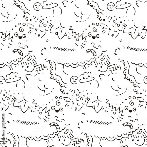 Abstract seamless pattern with dots, lines and emoji. Nice for prints, cards, designs and coloring books