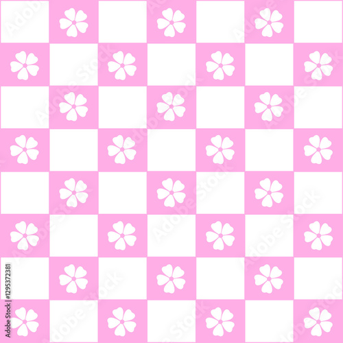 Abstract seamless pattern with flowers. Retro checkered pink background.