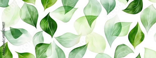 Abstract seamless pattern with green and blue leaves, green watercolor background, vector illustration, flat design, geometric