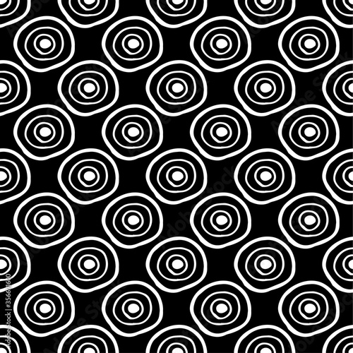 Abstract seamless pattern with hand drawn circle doodles on black background. Stock vector