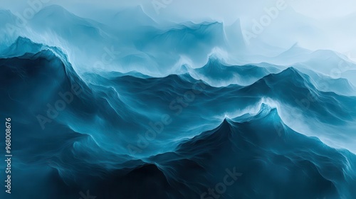 abstract seascape featuring undulating waves in mesmerizing shades of blue and teal foamcapped crests create a rhythmic pattern evoking the power and serenity of the ocean