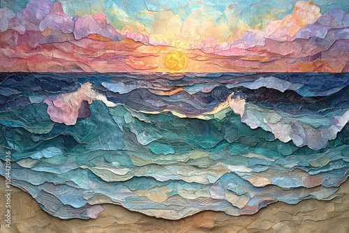 Abstract Seascape with Sunset and Textured Waves