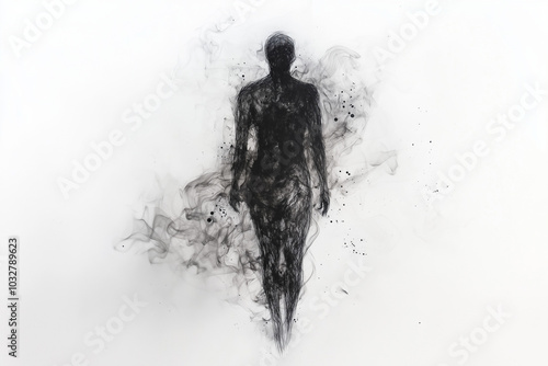 Abstract Shadow Figure in Smoke: A Surreal Black and White Art Print