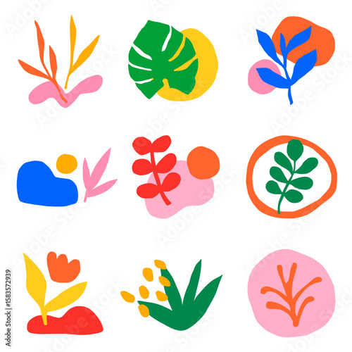 Abstract shape png stickers set, transparent background