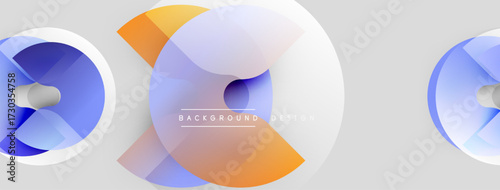 Abstract shapes, blue, orange gradients. Modern design elements over light gray background. Minimalist composition, smooth transitions.