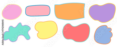 Abstract shapes in a variety of colors with outlines for creative design and visual interest in art