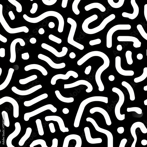 Abstract shapes pattern design Black and white background Vector illustration Seamless texture Modern art style Graphic design element