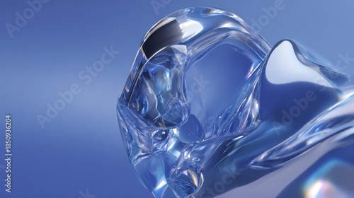 Abstract shimmering crystalline formation of blue liquid with light refractions on a clean background