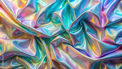 Abstract Shimmering Iridescent Fabric with a Rainbow of Colors, Draped and Flowing, Creating a Luxurious Texture