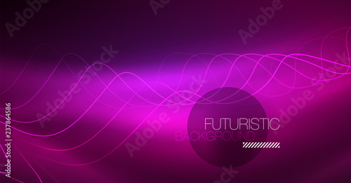 Abstract shiny glowinng color wave design element on dark background - science or technology concept
