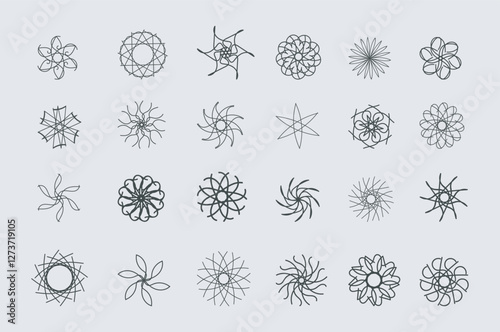 Abstract silhouette line art floral asian decorative illusion mandala set design vector