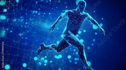 Abstract silhouette soccer player. Blue background copy space. Generative AI