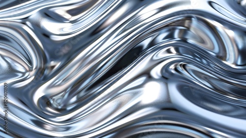 Abstract silver wavy background with shiny metallic lines and waxy texture. Ideal for business use, wallpapers, and designs needing smooth curves and copy space. Noise-free 3D rendering.