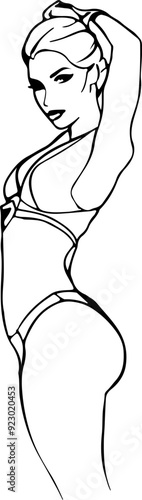 Abstract Sketch Line Drawing of Female Figure. Woman Body Vector Linear Drawing. Female Silhouette Outline Abstract Portrait for Minimalist, Fashion Design. Vector EPS 10.