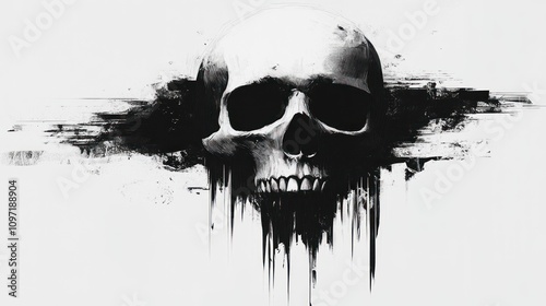Abstract Skull Painting Black White Dripping Art