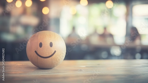 Abstract Smiley Face on Wooden Circle Symbolizing Customer Satisfaction and Positive Experiences