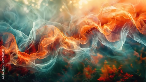 Abstract Smoke Swirls: A mesmerizing and ethereal dance of orange and turquoise smoke, captured in a dreamy and abstract landscape, evokes a sense of mystery and wonder.