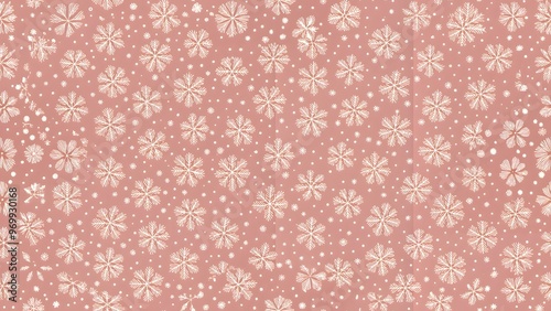 Abstract Snowflakes seamless background. Subtle pattern with small hand-drawn white snowflakes and a green backdrop. Winter holidays theme, Christmas and New Year texture.