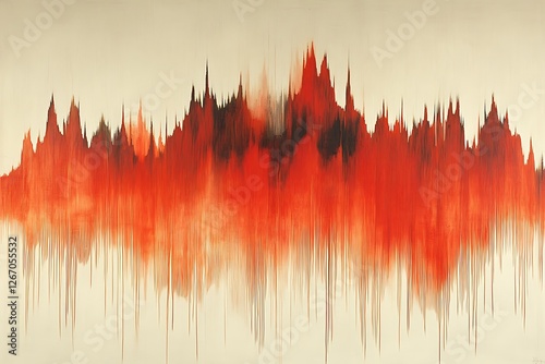 Abstract sound wave art in vibrant red hues against a soft beige background, evoking emotion