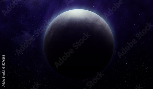 abstract space 3D illustration, moon planet in space in the soft radiance of stars