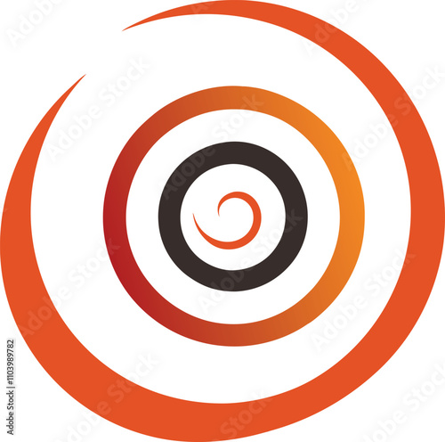 Abstract Spiral Design, Orange and Black Concentric Circles