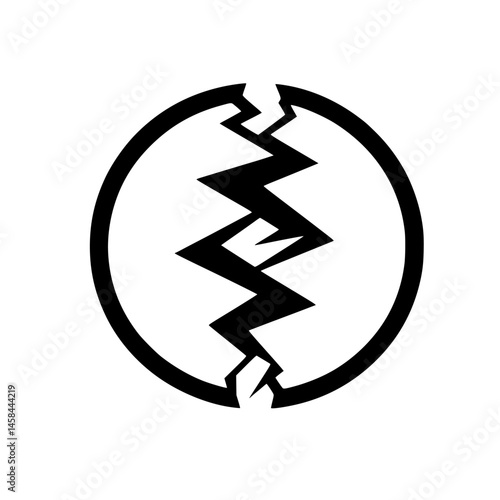 Abstract Split Circle Icon: Geometric Lightning Bolt on White