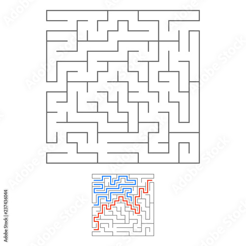Abstract square maze. Game for kids. Puzzle for children. Labyrinth conundrum. Black flat vector illustration isolated on white background. With answer.
