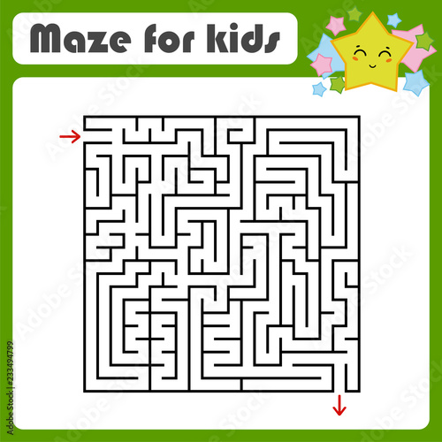 Abstract square maze. Kids worksheets. Activity page. Game puzzle for children. Cute cartoon star. Labyrinth conundrum. Vector illustration.