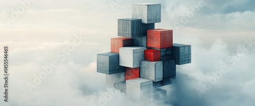 Abstract structure of cubes floating above clouds