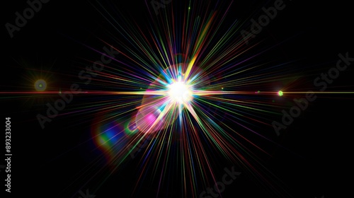 Abstract sun explosion digital flare Rainbow reflection Lens flare effect on black background for overlay design.