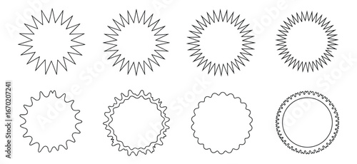 Abstract Sun Shapes Collection with Different Pointed and Wavy Outlines, Isolated Vector Illustration