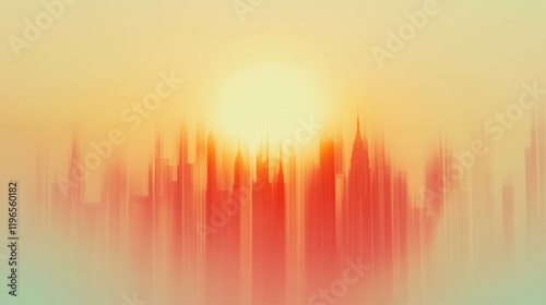 Abstract sunrise skyline with vibrant colors and blurred cityscape for modern decor