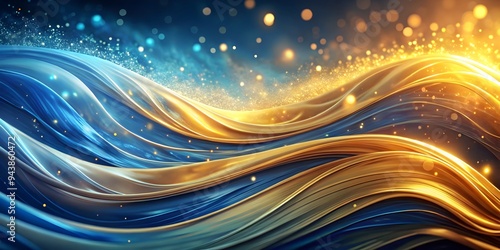 abstract swirl of blue and gold waves, elegant desktop wallpaper