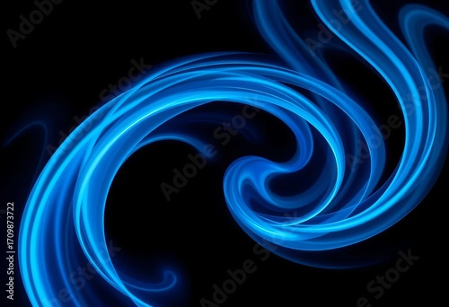 Abstract swirling blue curves on a dark background, ocean, pattern