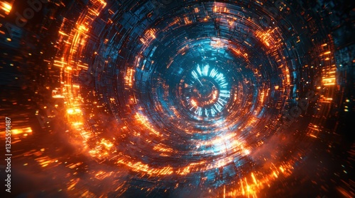 Abstract swirling energy vortex with fiery orange and cool blue hues.