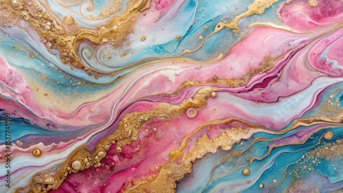 Abstract Swirling Fluid Art with Pink, Teal, and Gold Accents A Luxurious Textured Background for Design Projects